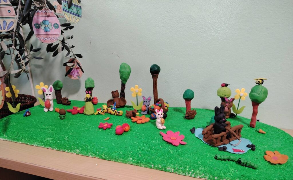 Ususret Uskrsu i dolasku proljeća, dane smo ispunili radošću, bojama i maštom. Puno smo crtali, stvarali šarene radove i kroz igru oživjeli svoje ideje. Modelirali smo razne oblike, istraživali različite materijale i pritom se odlično zabavljali. U veselom ozračju igre i stvaranja, zajedno smo dočekali proljeće – uz osmijehe, druženje i puno kreativnosti.